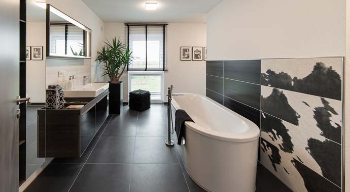 Im musterhaus verfuegt das bad ueber eine mittig an einer wand platzierte innen gekachelte duschnische mit regendusche. Mehr von vio 420 tolles familienhaus mit eigenem stromspeicher. 15082020 kein traumhaus ohne traumbad.