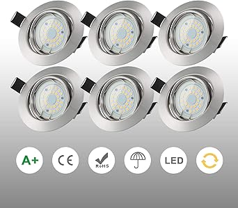 Bklicht i 6er set led bad einbauleuchten i stufenlos dimmbar i ultra flach 25mm i o90mm i matt nickel i 6 x 5w led platinen i 460 lumen i 3000k warmweiss i ip44 i bad einbaustrahler 28 price 54 99. Aufgrund ihrer ausmasse sind sie hervorragend fuer badezimmer oder wc raeume geeignet die in der regel recht klein bemessen sind. Diese schutzart gibt an dass sie sowohl staubdicht als auch gegen strahlwasser geschuetzt ist.