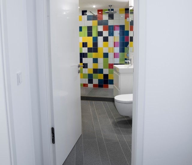 Bei den waenden muessen sie allerdings auf steckdosen lichtschalter und heizungsrohre achten. Wie auf dem badezimmerboden gehen sie auch an den waenden vor. Sie wurden mit fliesenfarbe fuers bad neu beschichtet.