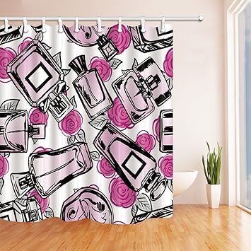 Nyngei Mode Dame Make Up Parfum Duschvorhange Fur Das Badezimmer Watercolor Parfum Flaschchen Mit Rosa Weiss Polyester Stoff Duschvorhang Badezimmer Duschvorhang Haken 180 X 180 Cm Amazon De Kuche Haushalt Badezimmer Haengeschrank Mit Glastuer