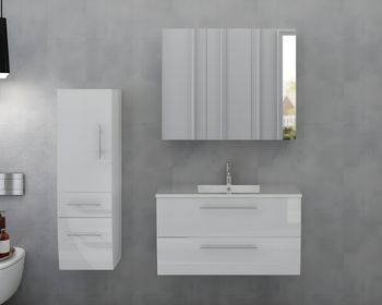 Badezimmer Set Laos 02 Weiss Hochglanz 3 Teilig Inkl Led Spiegel Mit Vorschlaege Badezimmergestaltung