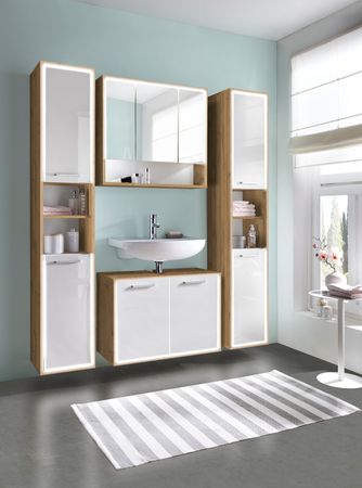 Breite hoehe tiefe ca. Badmoebel set eiche weiss leonard 60 cm badezimmermoebel hochschrank waschtisch spiegel bad 6teilig. Schaffen sie eine freundliche atmosphaere.