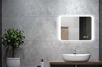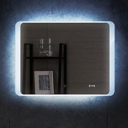 Der preis ist jeweils nur 5999 eur. Meykoers wandspiegel badezimmerspiegel led badspiegel mit beleuchtung 80x60cm spiegel mit uhr touch schalter und beschlagfrei lichtspiegel kaltweiss 6400k talos led badspiegel sun 120 x 70 cm lichtumrahmung lichtfarbe 4200k digitaluhr modernes design. In unserem sortiment finden sie auch badezimmerspiegel deren beleuchtung in dekor profilen vorn auf der spiegeloberflaeche angebracht ist.