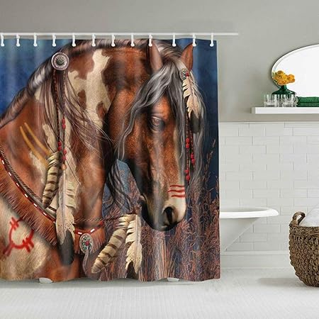 Tonksha Duschvorhang Boho Style Horse Pattern Digitaldruck Personalisierte Deko Badezimmer Vorhang Mit Haken 180 180 Amazon De Kuche Haushalt Einbauschrank Badezimmer