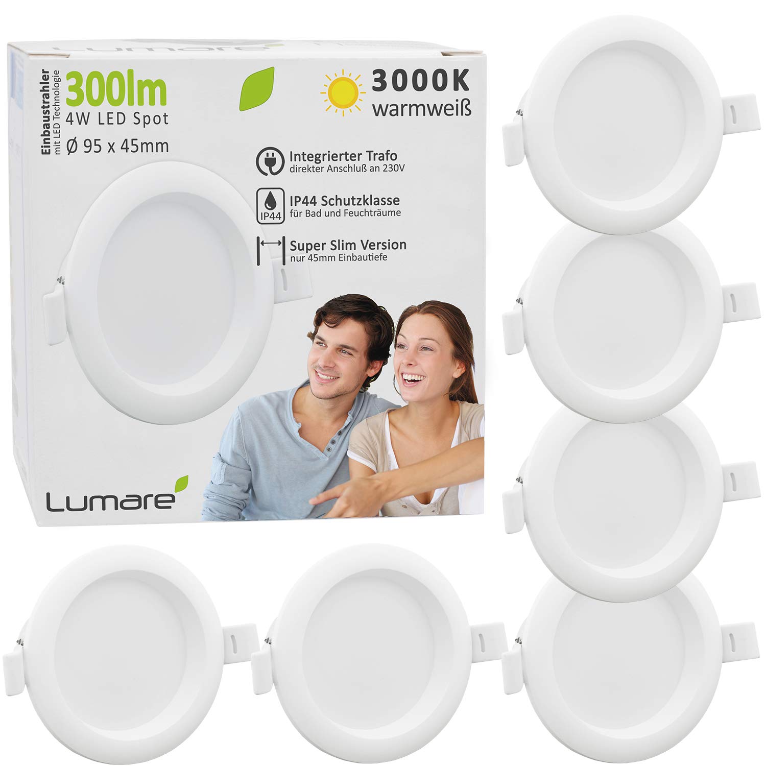 Lumare Led Einbaustrahler 4w 230v Ip44 Ultra Flach 6er Set Wohnzimmer Badezimmer Einbauleuchten Weiss 45mm Einbautiefe Mini Slim Decken Spot Warmweiss Amazon De Beleuchtung Bambus Badezimmer Regal Schmal