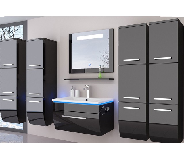 Verfuegbar lieferzeit 5 12 werktage. 5 teiliges waschplatz badmoebel komplettset inkl. Led beleuchtung hochglanz weiss.
