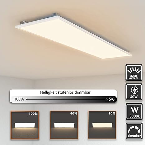 Briloner leuchten ultraflaches rgb cct led panel deckenleuchte rechteckig 1195 x 295cm weiss farbtemperatursteuerung 3000 6500 kelvin dimmbar 4100 lumen lichtleistung kunststoff von briloner leuchten. Ergaenzen sie bereits vorhande lichtquellen um ein led panel errechnet sich die gesamthelligkeit aus der summe aller lampen. Dazu ist ein dimmbarer treiber erforderlich.