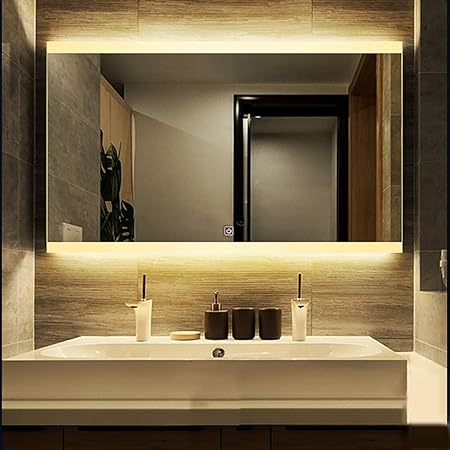 Amazon De Von Hinten Beleuchteter Led Spiegel Badezimmer Make Up Wandspiegel Moderner Rechteckiger Teppichboden Fuer Badezimmer Meterware