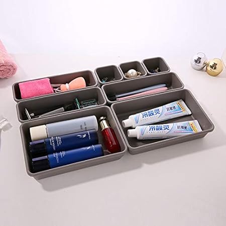 Transparenter gruener schubladen organizer bestehend aus 6 losen behaeltern die nebeneinander aufgestellt oder gestapelt werden koennen. Practical comfort schubladen organizer verstellbarer schubladeneinsatz aus aluminium fuer clutter freie kueche schubladen buero klinik set aus 9 trennelementen 3 lang 6 kurz 445 50 cm tief preis. Eine praktische groesse fuers badezimmer mit einem schlichten und eleganten design.
